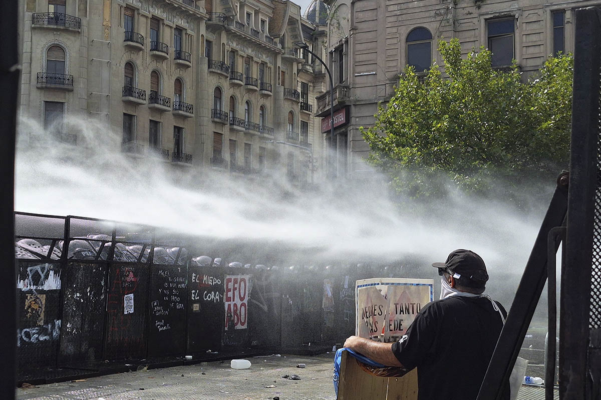 De demonstranten begonnen zich te verspreiden over de Avenida de Mayo terwijl de stadspolitie een veegoperatie uitvoerde. Ze joegen mensen op zonder ruimte te laten.
