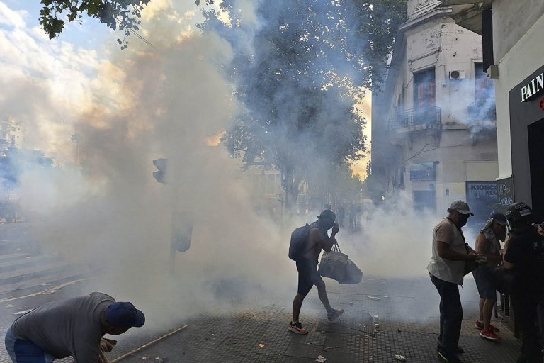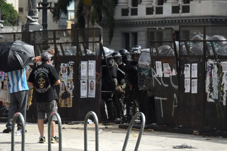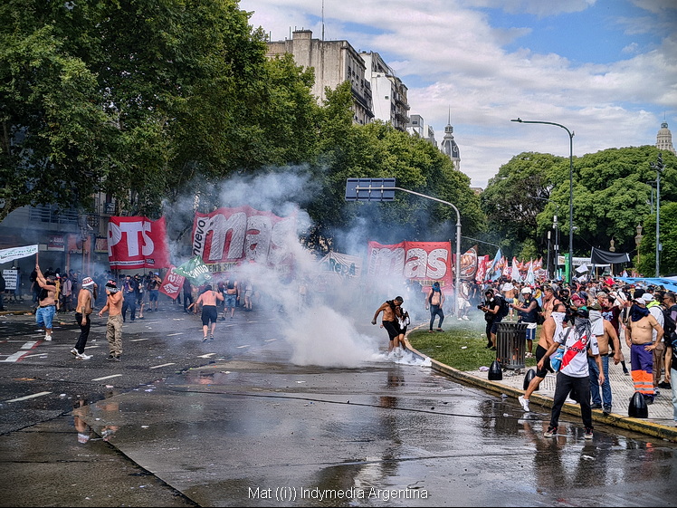 Op de Avenida de Mayo bleven linkse vakbonden, partijen, sociale bewegingen en delen van de CGT op hun post. Op het plein was het traangas te ruiken, maar het verzet hield stand.