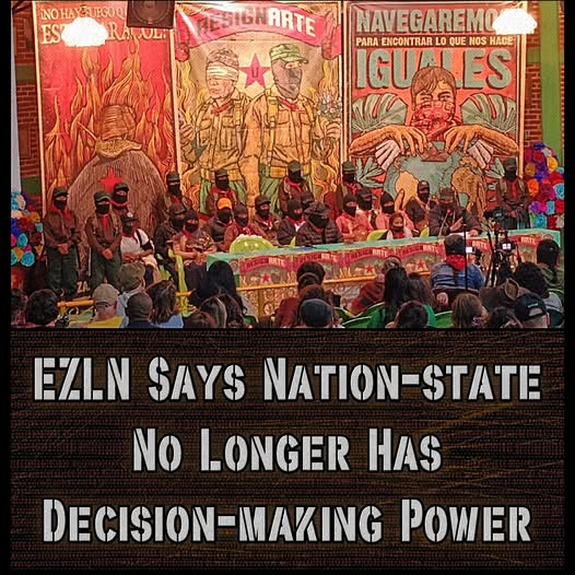 “Het belangrijkste slachtoffer van de huidige fase van het kapitalisme is de natiestaat, die tegenwoordig geen besluitvormingsvermogen meer heeft”, aldus kapitein Marcos van het Zapatistisch Leger van Nationale Bevrijding (EZLN).