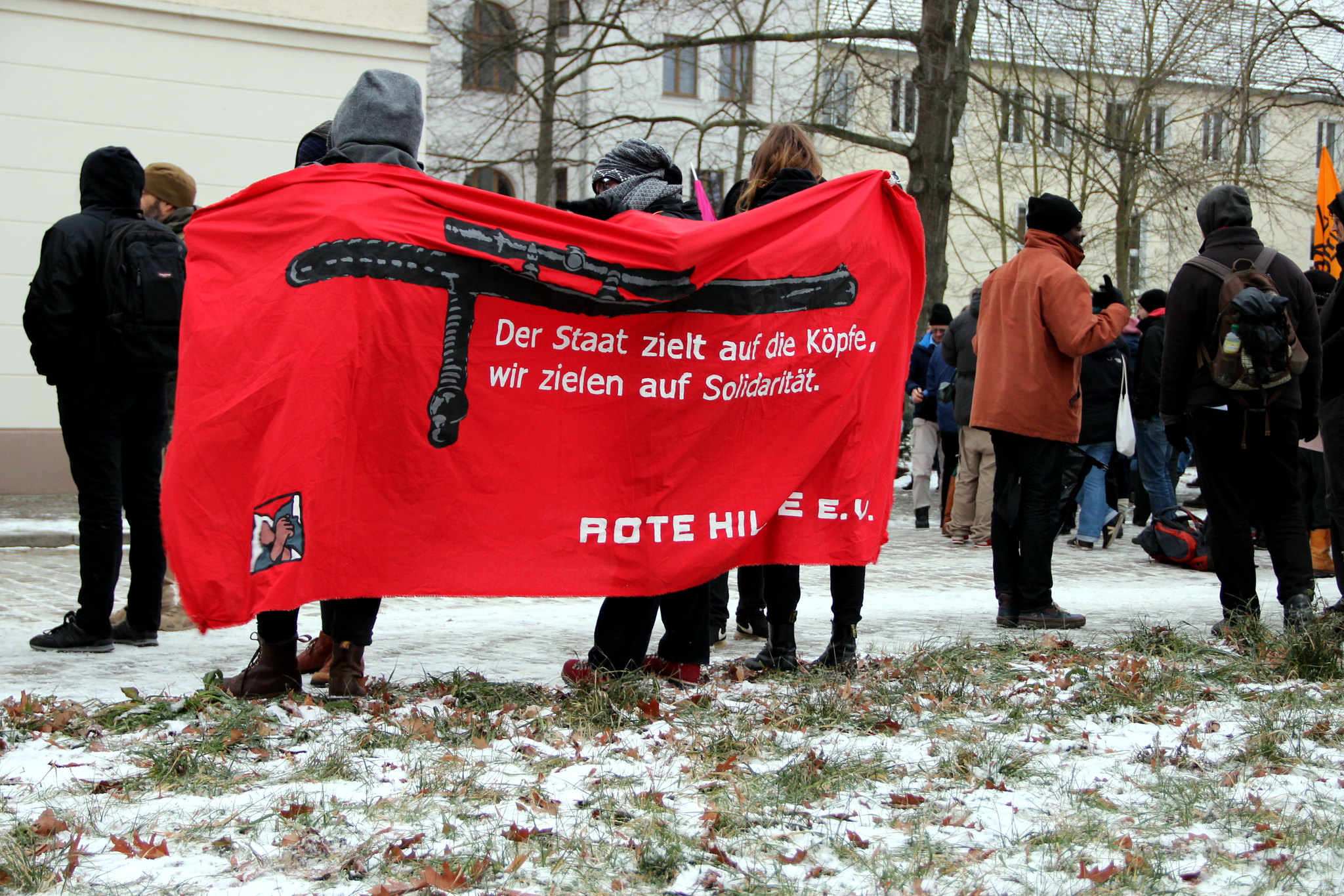 We zijn natuurlijk dankbaar voor elke vorm van solidariteit, zowel met Rote Hilfe als met alle kameraden die door repressie worden getroffen. Ik denk dat we linkse mensen in het algemeen alleen maar kunnen aanmoedigen om zelf actief te worden, of dat nu is in de strijd tegen staatsrepressie of op andere gebieden. De tijden worden zwaarder. Het is tijd om actie te ondernemen.