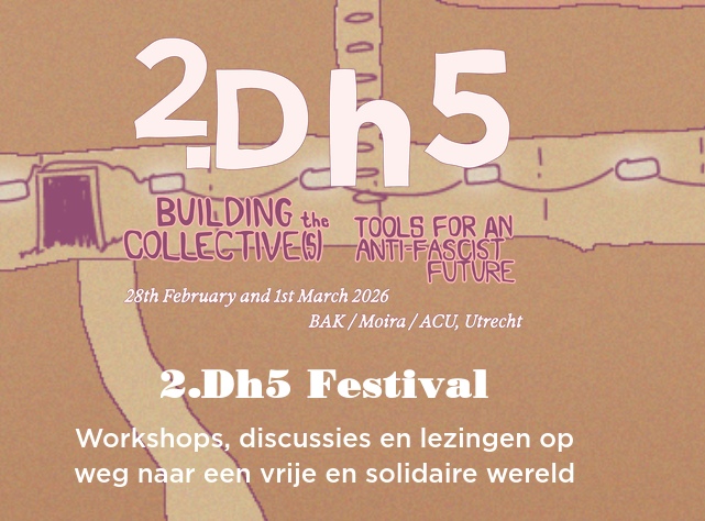 We leven in dystopische tijden. Extreemrechts is aangemoedigd en gaat de straat op. Queers en migranten worden steeds meer gemarginaliseerd en bedreigd. Liberale politieke partijen houden zich op oneerlijke wijze bezig met antifascistische retoriek, louter om een verkiezing nipt te winnen. We weten dat dit niet zal leiden tot een duurzaam alternatief; het is aan ons om dat op te bouwen, en we willen dat samen met jullie doen. Jullie zijn uitgenodigd als onze mede-samenzweerders, als onze kameraden, voor de komende editie van 2.Dh5, met als thema “Building the Collective(s) – Tools for an Antifascist Future.”